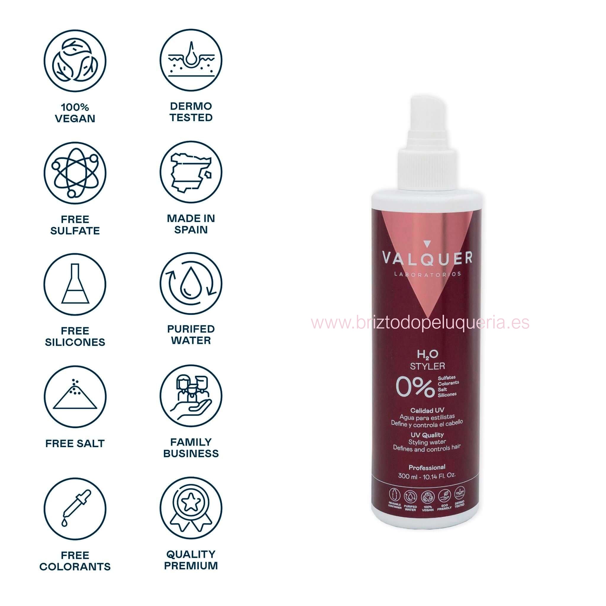 AGUA DE PEINADO H2O STYLER para estilistas con protector solar VALQUER