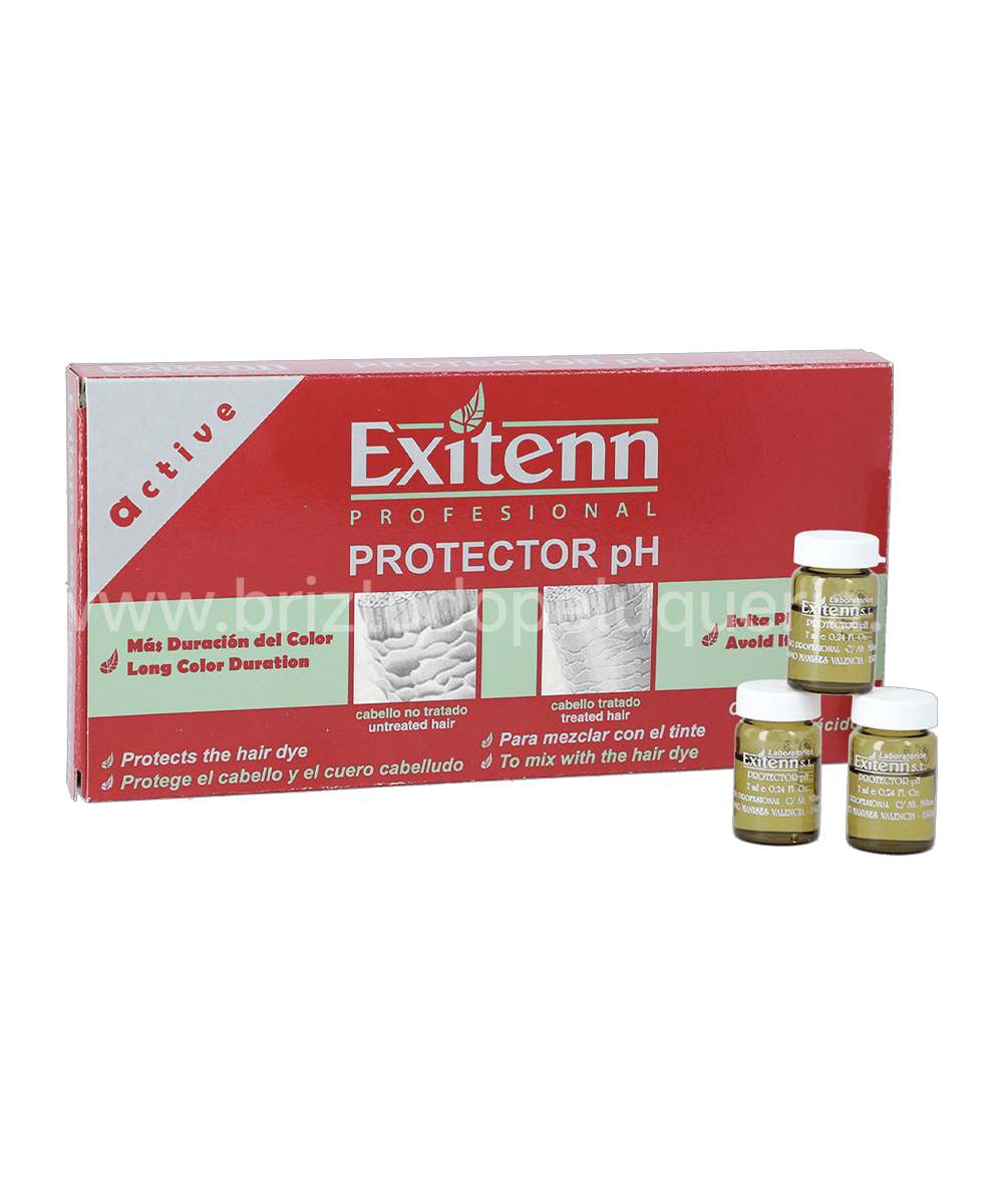 | Modo de empleo | Se mezcla con el tinte: 60 ml de tinte: con oxidante al 10 vol. (3%) = 2 ml de protector PH. con oxidante al 20 vol. (6%) = 3 ml de protector PH. con oxidante al 30 vol. (9%) = 4 ml de protector PH. NO APLICAR SI EL CUERO CABELLUDO ESTÁ IRRITADO O LESIONADO con oxidante al 40 vol. (12%) = 6 ml de protector PH. |