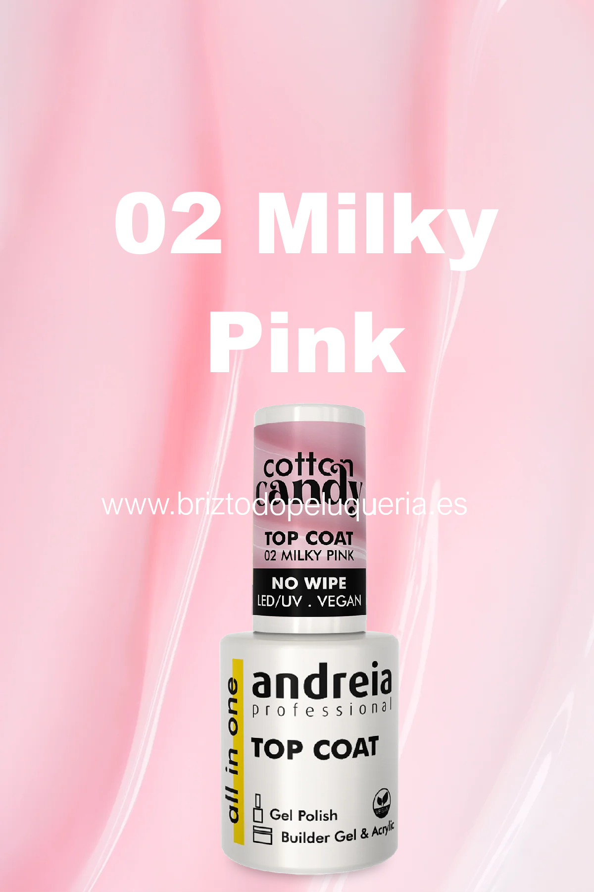 TOP COAT ROSA LECHOSO – perfecto para manicura francesa y Baby Boomer All in One Cotton Candy – 02 Milky Pink ANDREIA PROFESSIONAL